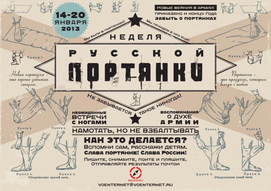 Перечислять достоинства портянок можно долго. Но вот не понятно, в чью же интендантскую голову под каракулевой шапкой пришла вдруг идея – изничтожить традиционную, проверенную временем и войнами солдатскую портянку? Непонятна мне логика нынешних полководцев. Да и не хочется думать, что это сам Шойгу такую диверсию затеял. Он же все-таки бывший спасатель, и его голова по определению не должна рождать подляны.