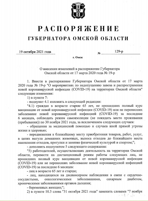Внесены изменения в распоряжение губернатора Омской области Александра Буркова «О мероприятиях по недопущению завоза и распространения новой коронавирусной инфекции (COVID-19) на территории Омской области».