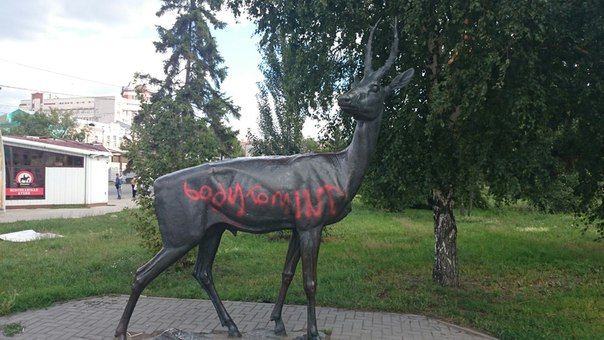 Кроме того, пострадала и фигура оленя, который по городской легенде исполняет загаданное желание, если потереть его ногу.