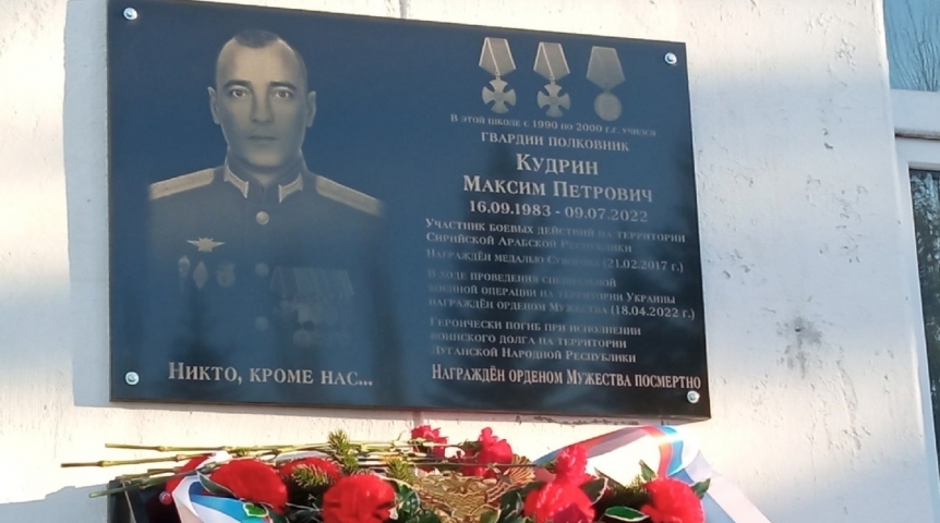 В Омске 11 января 2023 года открыли мемориальную доску в честь гвардии полковника и выпускника средней школы № 103 Максима Кудрина. Об этом сообщается на официальной странице школы в соцсети «ВКонтакте».