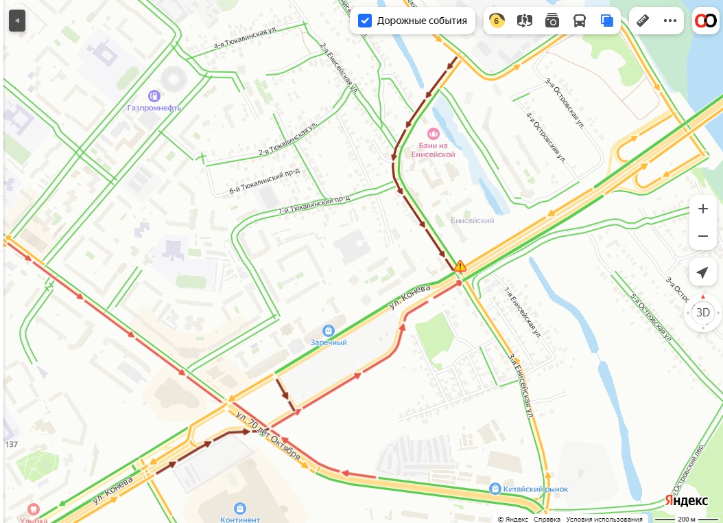 В то же время на улице Конева в сторону метромоста утром 16 февраля скопилась пробка из автомобилей. Также плотное движение наблюдается на 3-й Енисейской со стороны 3-й Островской.