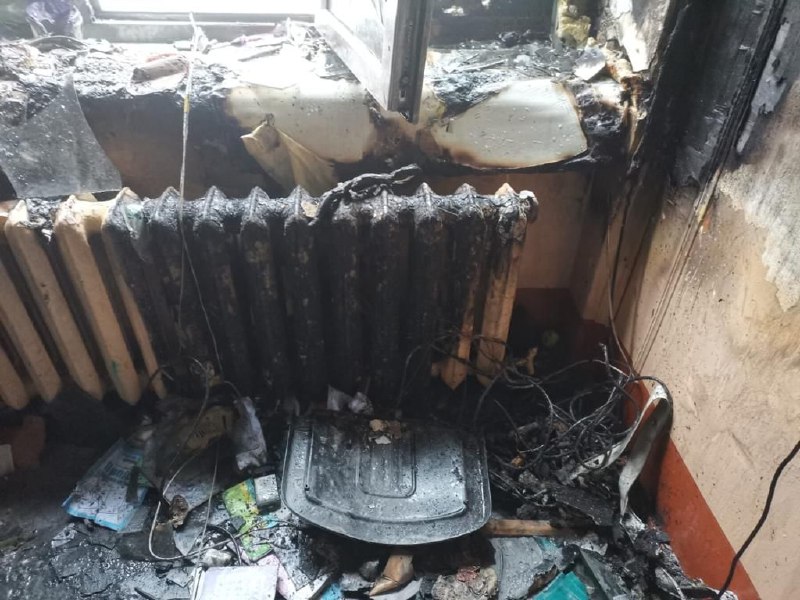 Как можно судить по представленным снимкам, после ЧП в помещении остались обгорелые батареи и провода, повсюду беспорядок, а парты покрыты чем-то, похожим на сажу.