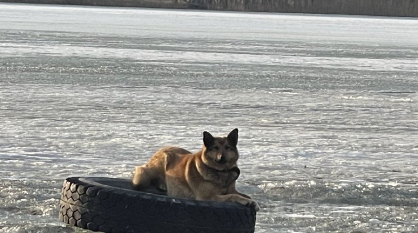 Как животное оказалось на острове, не сообщается. Не исключено, что собака пришла туда по небезопасному льду, но не смогла вернуться обратно.