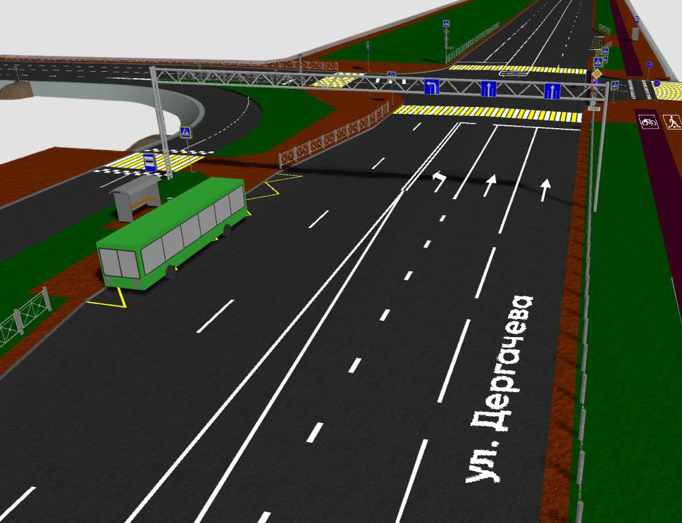 Специалисты ООО «Автодорпроект» также разрабатывают проект устройства новых инженерных коммуникаций на улице Дергачева. Общая протяженность магистральных сетей составит 2,23 км: ливневая канализация, наружное освещение и контактная сеть троллейбуса.
