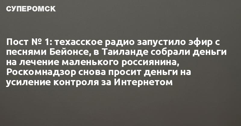 Пост № 1: техасское радио запустило эфир с песнями Бейонсе, в Таиланде собрали деньги на лечение маленького россиянина, Роскомнадзор снова просит деньги на усиление контроля за Интернетом