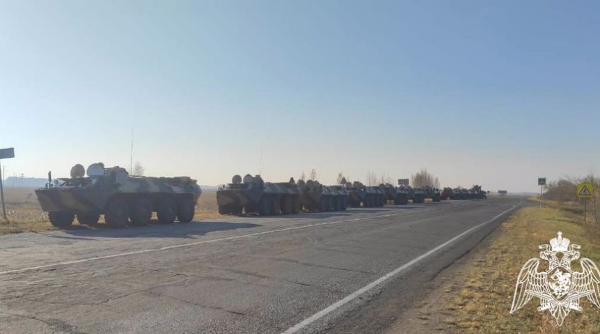 Судя по фотографиям с мероприятия, опубликованным региональным Управлением Росгвардии, колонна двигавшаяся по дорогам Омской области в северо-восточном направлении, состояла из более чем 10 бронетранспортеров. БТР двигались колонной на относительно небольшом расстоянии друг от друга.