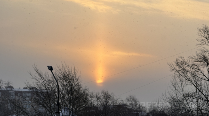 Сегодня жители могли наблюдать яркий световой столб, исходящий от солнца, однако в силу уникального преломления лучей и, вероятно, расположения облаков, на небе угадывался крест.