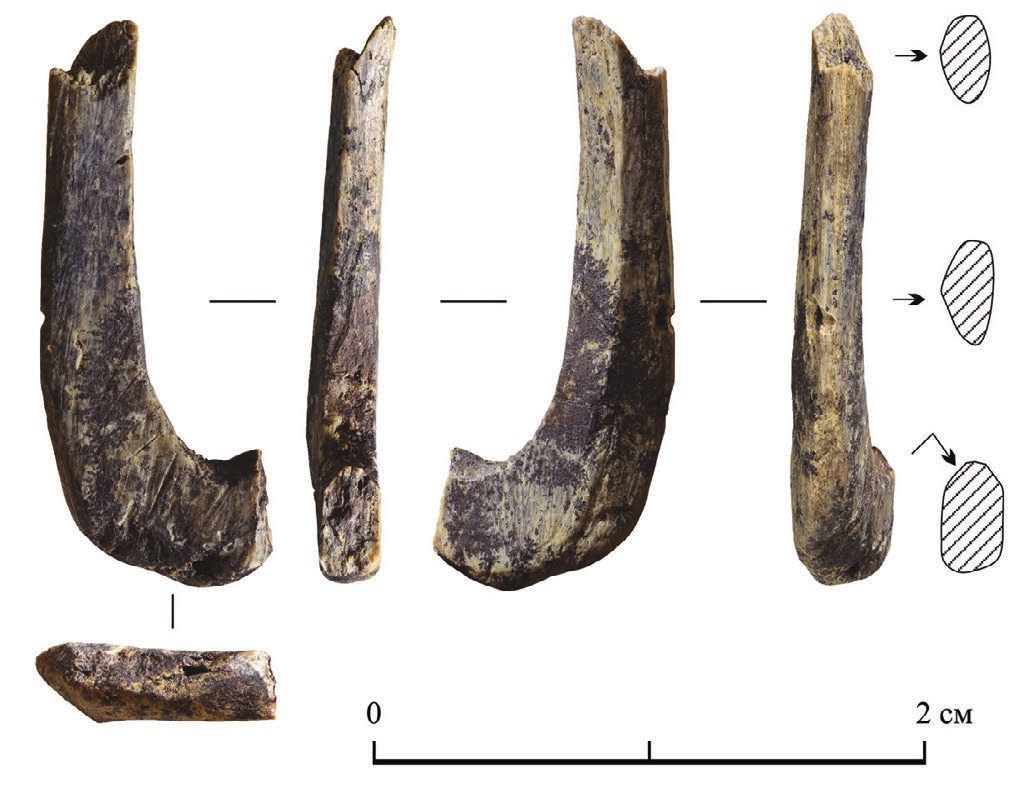 «Небольших размеров изделие выполнено из стенки диафиза крупной трубчатой кости, повреждено в нескольких местах, что лишает нас информации об особенностях его крепления к бичеве и тактике подсечки добычи. Но большая часть изделия хорошо сохранилась, демонстрирует оригинальную форму и следы интенсивного износа. На поверхности изделия фиксируются следы зубов различных видов рыб», – такое описание артефакта представлено в опубликованных материалах.