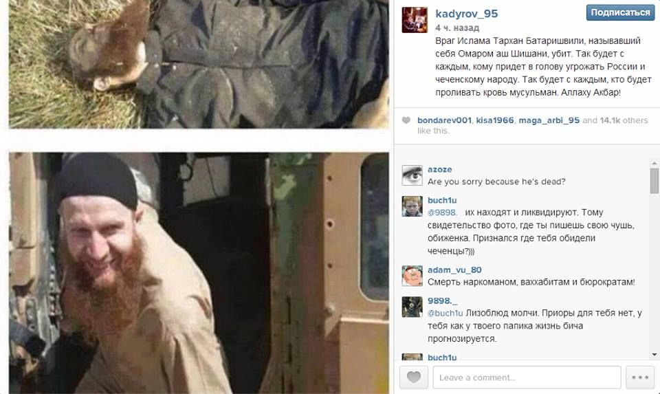 «Враг Ислама Тархан Батирашвили, называвший себя Омаром аш Шишани, убит. Так будет с каждым, кому придет в голову угрожать России и чеченскому народу», – подписал фотографию глава Чеченской республики.