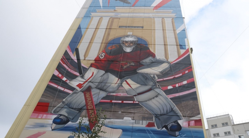 На одном из жилых домов Омска в рамках арт-фестиваля «Омск – ты просто космос» появился новый мурал. На высотке по улице 2-й Поселковой, 16, художники изобразили хоккейного вратаря в форме омской команды «Авангард», который защищает один из символов Омска – Тарские ворота.