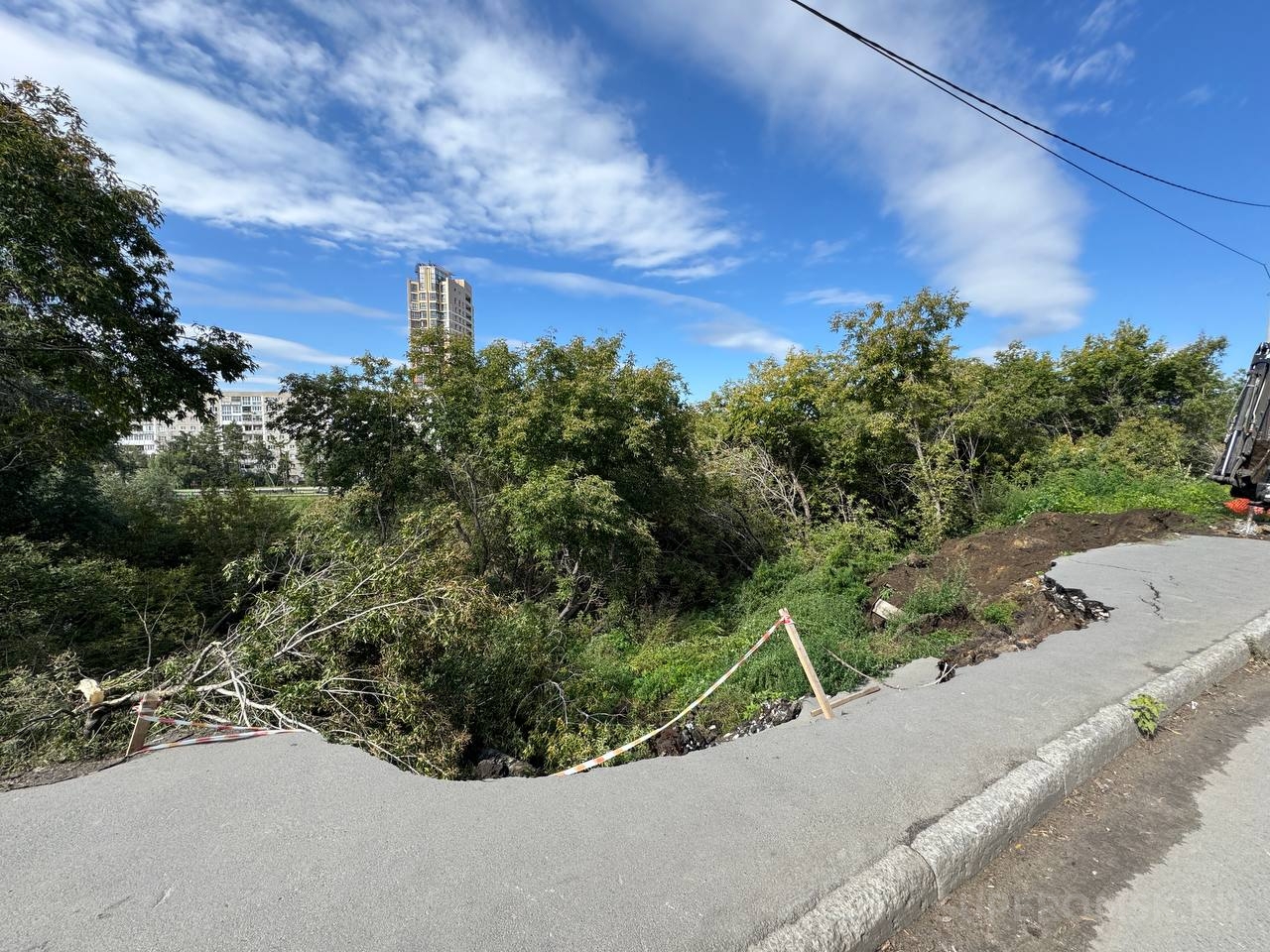В Омске закрыли для проезда участок дороги по улице Пушкина, пролегающий вдоль обрыва у реки Омь и ведущий к ТЦ «Триумф». Проезд ограничен на участке от улицы Пранова до улицы Подгорной.
