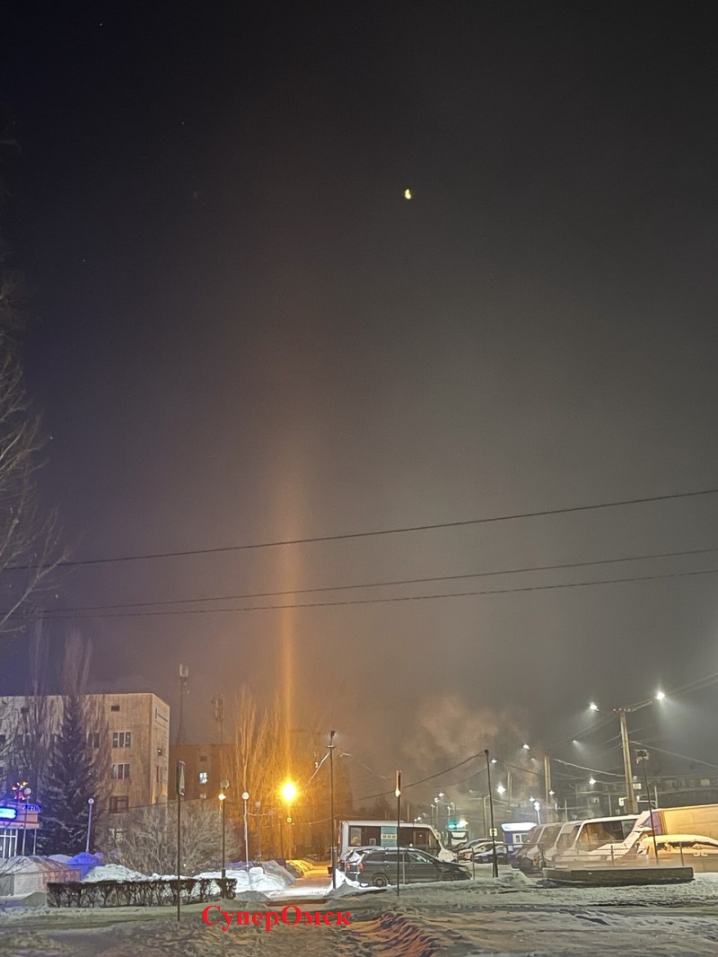 Вечером субботы, 18 января 2025 года, в Омске появилась возможность увидеть чудесное, по мнению автора, явление. Речь идет об оптическом явлении, «световые столбы» наблюдаются на улице буквально от каждого источника излучения.