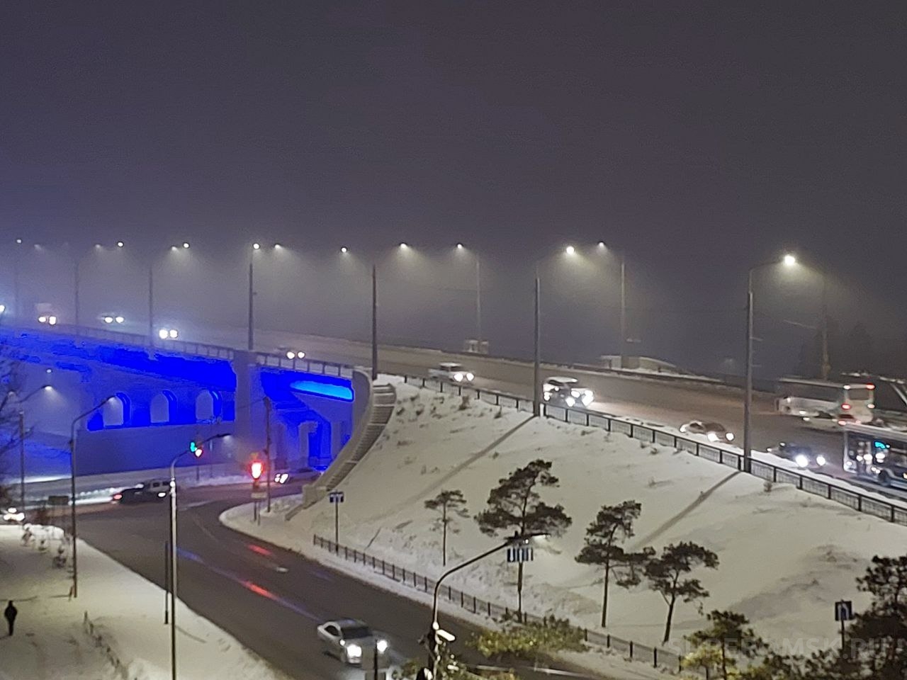 На момент публикации явление, в частности, можно наблюдать по всему городу. Можно предположить, что если плотная белая пелена продержится до утра, то это поспособствует возникновению утренних пробок.