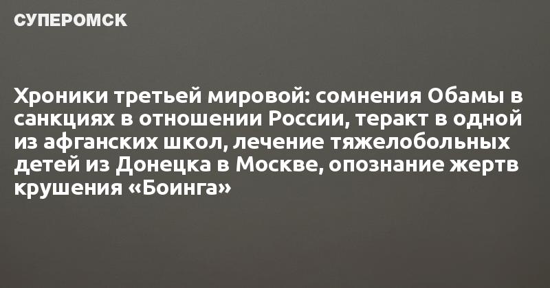 Хроники третьей мировой: сомнения Обамы в санкциях в отношении России, теракт в одной из афганских школ, лечение тяжелобольных детей из Донецка в Москве, опознание жертв крушения «Боинга»