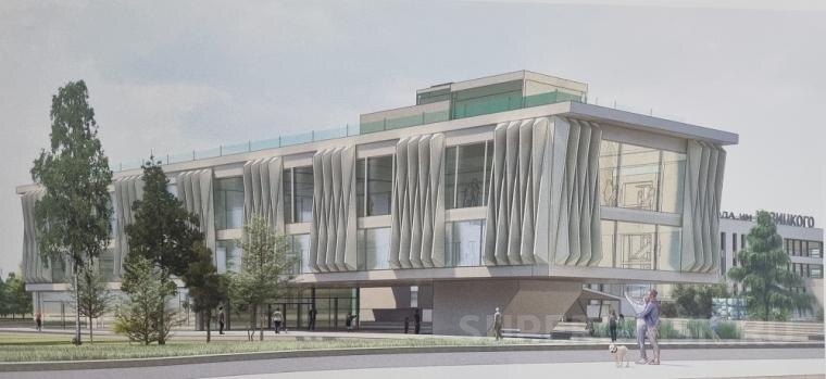 Алексей поделился эскизом проекта объекта. Его в 2024 году предложила выпускница кафедры архитектурно-конструктивного проектирования СибАДИ София Бережная. Как видно, здание она видит в стиле советского модернизма.