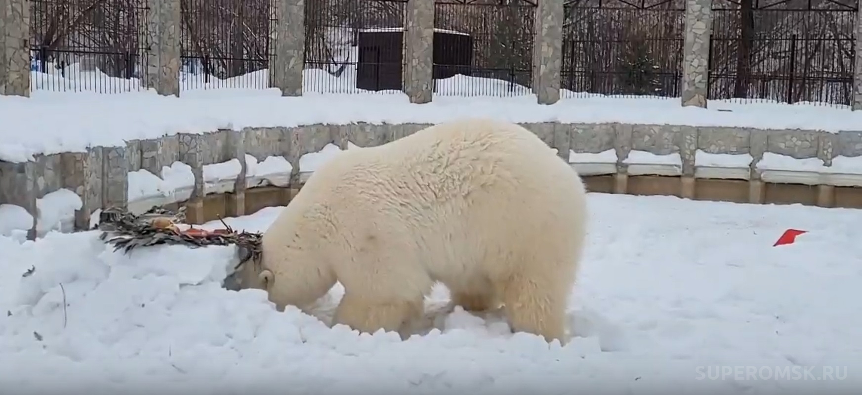 Белая медведица Думка из Большереченского зоопарка Омской области пережила первую в Сибири зиму. И адаптировалась к новым условиям играючи.