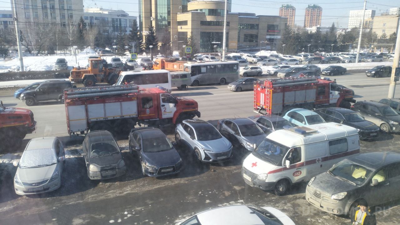 Фото: пожарные у здания на Красном Пути / источник: «СуперОмск».