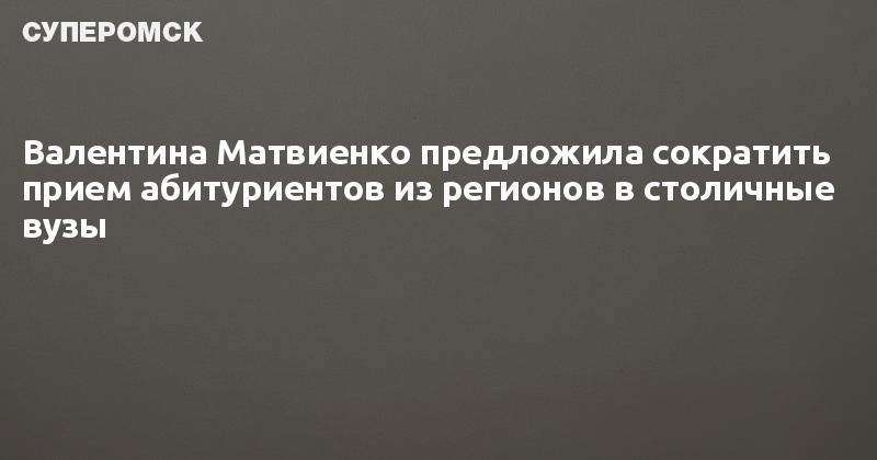 Председатель Совета Федерации РФ Валентина Матвиенко заявила, что следует принимать меньше абитуриентов из регионов в вузы Москвы и Санкт-Петербурга.