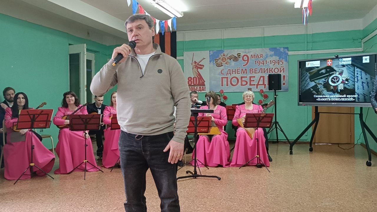 На концерте прозвучали песни военных лет 1941-1945 годов, а также стихи в исполнении учащихся 9-х и 6-х классов. Учащаяся 1-го класса Анна Назинцева прочитала стихотворение «Прадедушка», написанное ее мамой Ольгой Александровной.