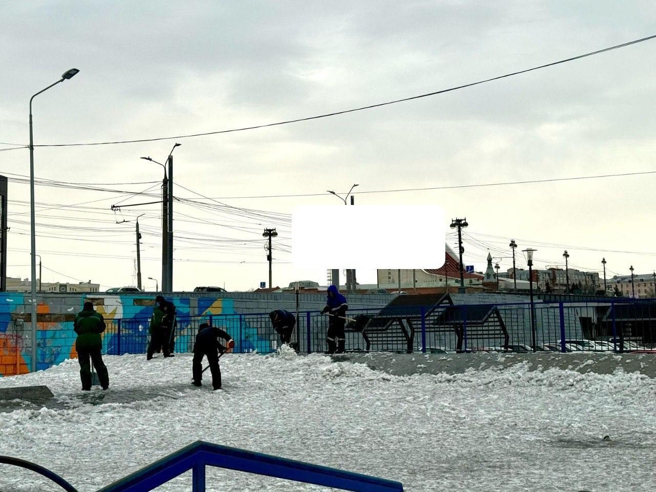 «Договорились, что сотрудники БУ «Спортивный город» позанимаются площадкой как только это будет возможно: здесь важно не просто убрать снег, а сделать это аккуратно, чтобы не повредить покрытие горок.