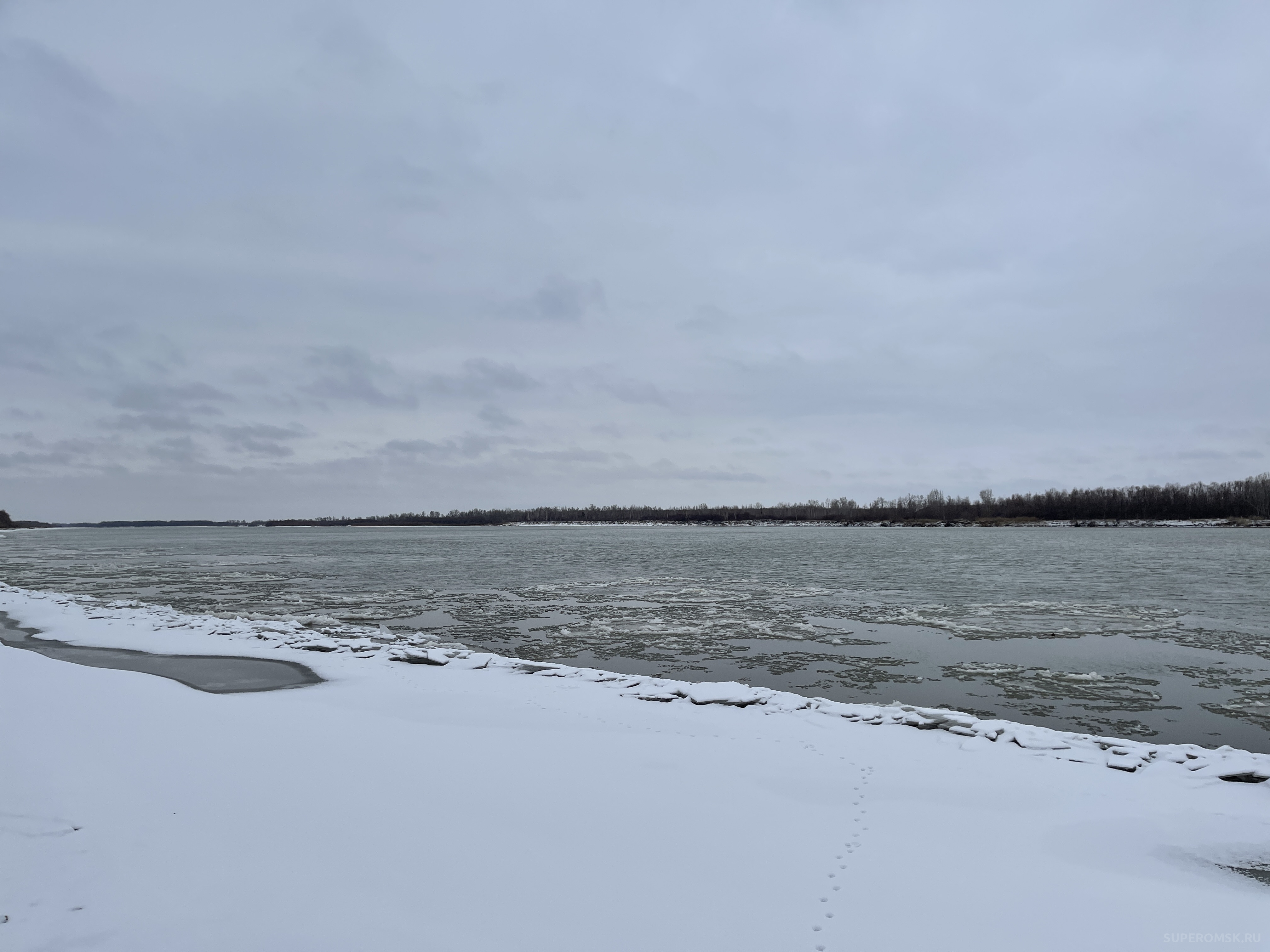 На закате воскресенья, 6 апреля 2025 года, в Омской области начался ледоход.