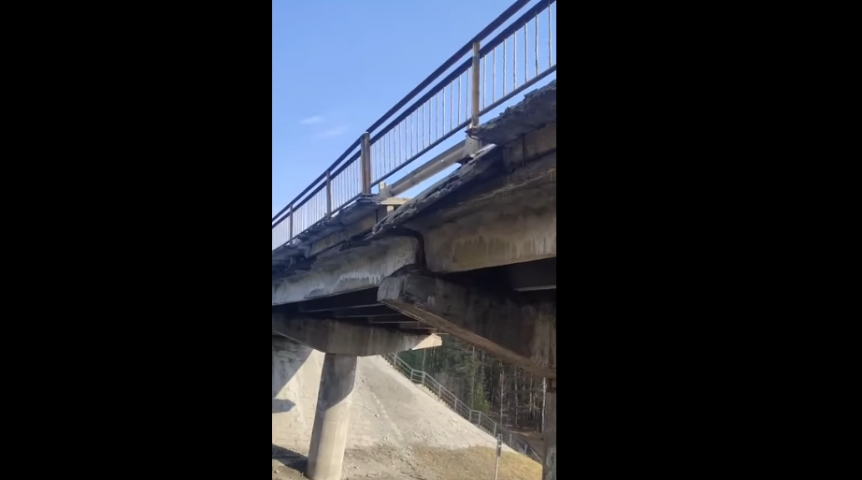 На фото: состояние моста на трассе Тюмень – Омск / Стоп-кадр с видео / Источник: паблик «ЧС Тюмень» соцсети «ВКонтакте»
