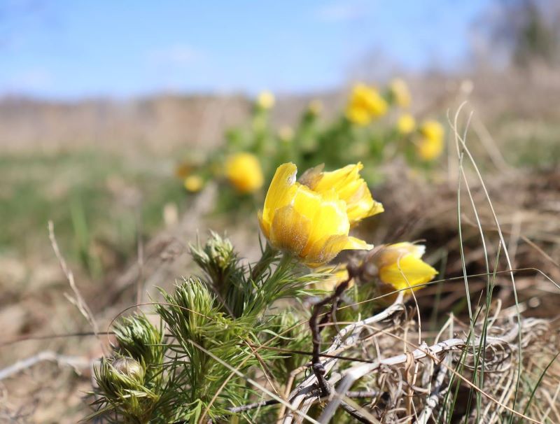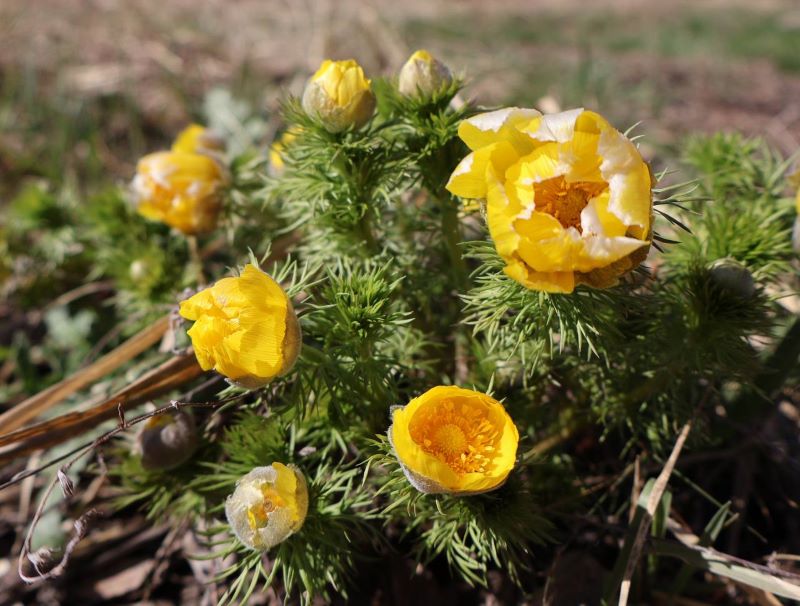 Вегетация адониса весеннего начинается очень рано, как только сходит снег. Красивейшие солнечно-желтые цветки будто возвещают приход весны. Цветение длится 2-3 недели с середины – конца апреля до середины мая.