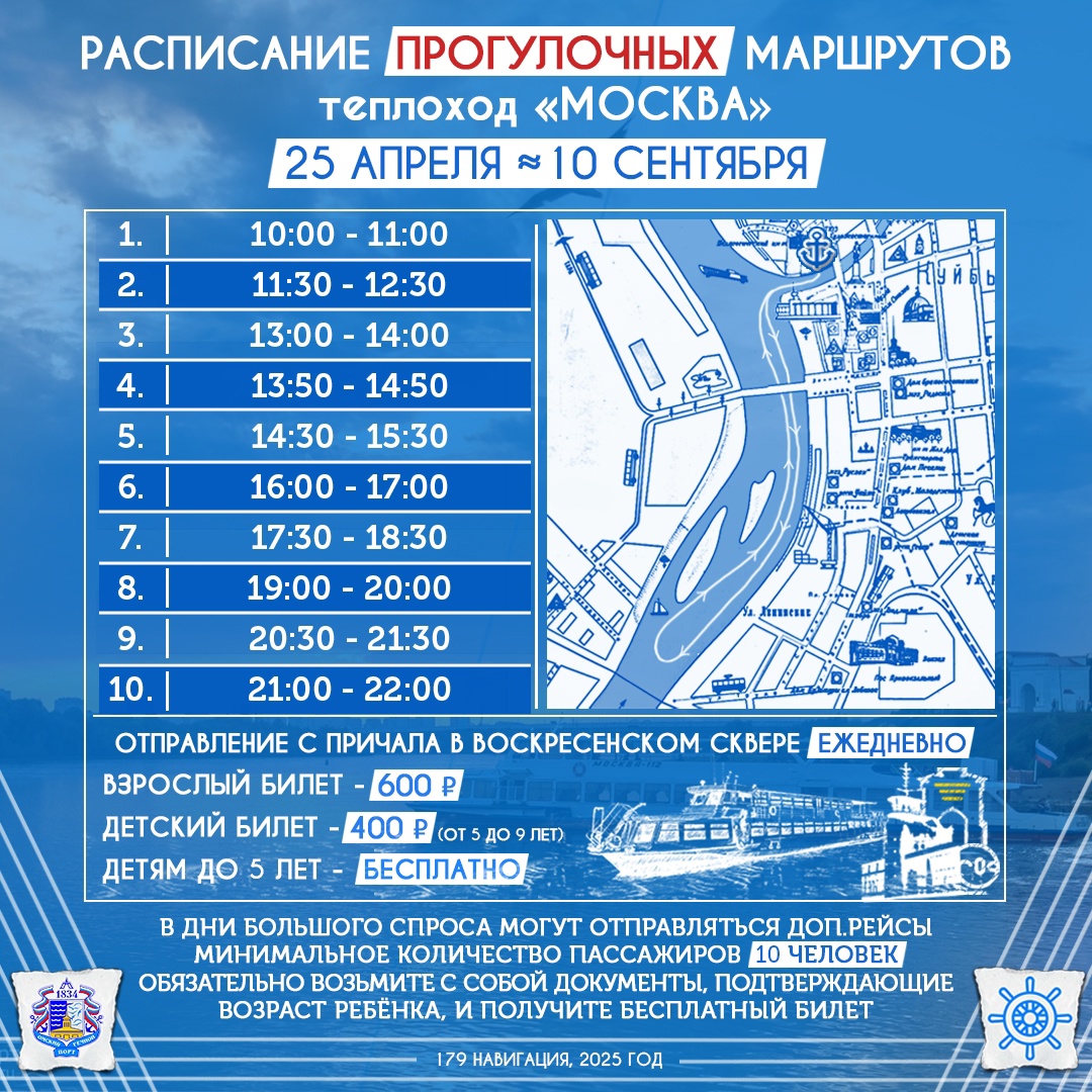 Расписание прогулочных маршрутов / паблик «Омский теплоход» соцсети «ВКонтакте»