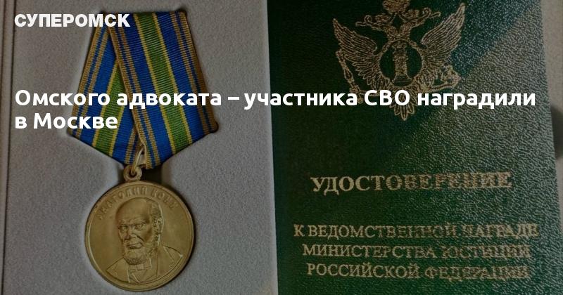 Омский адвокат – участник СВО Максим Ивакин награжден медалью имени Анатолия Кони. Ведомственную награду в Москве вручил министр юстиции Российской Федерации Константин Чуйченко.