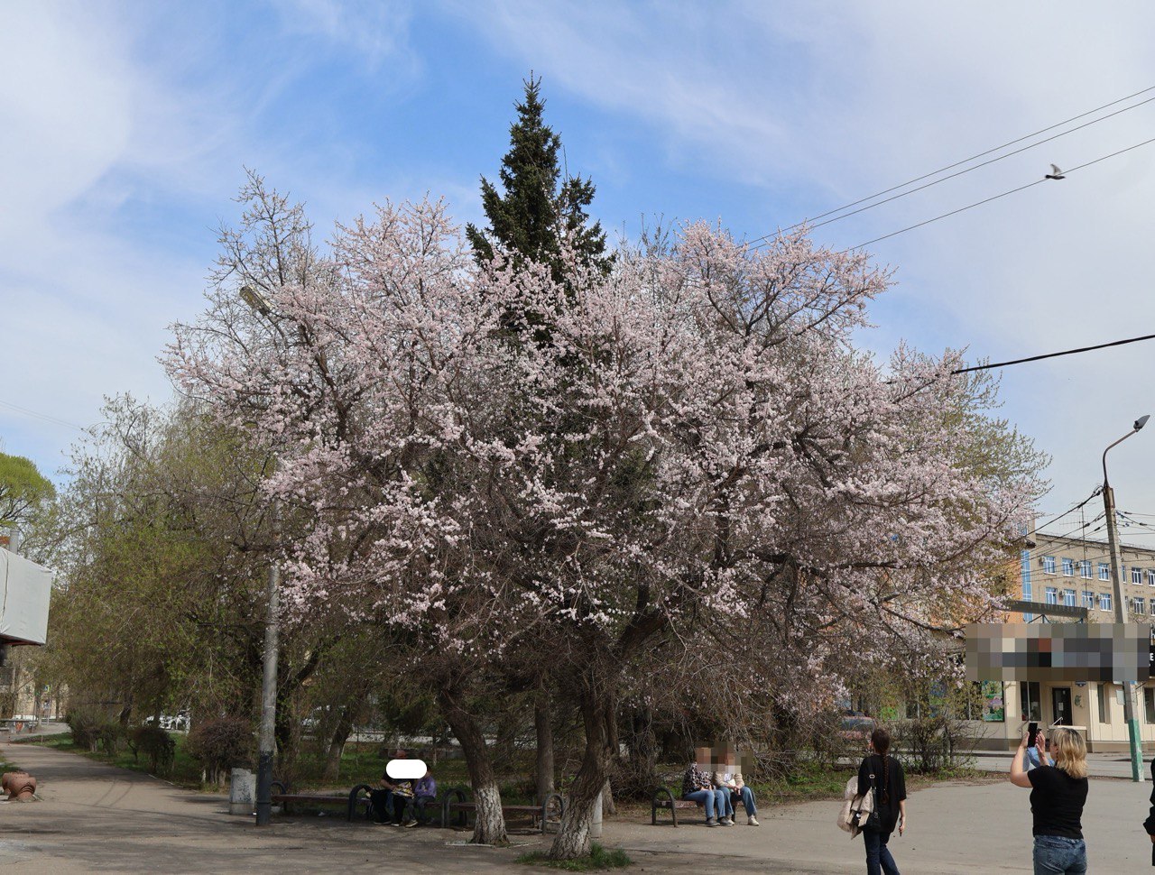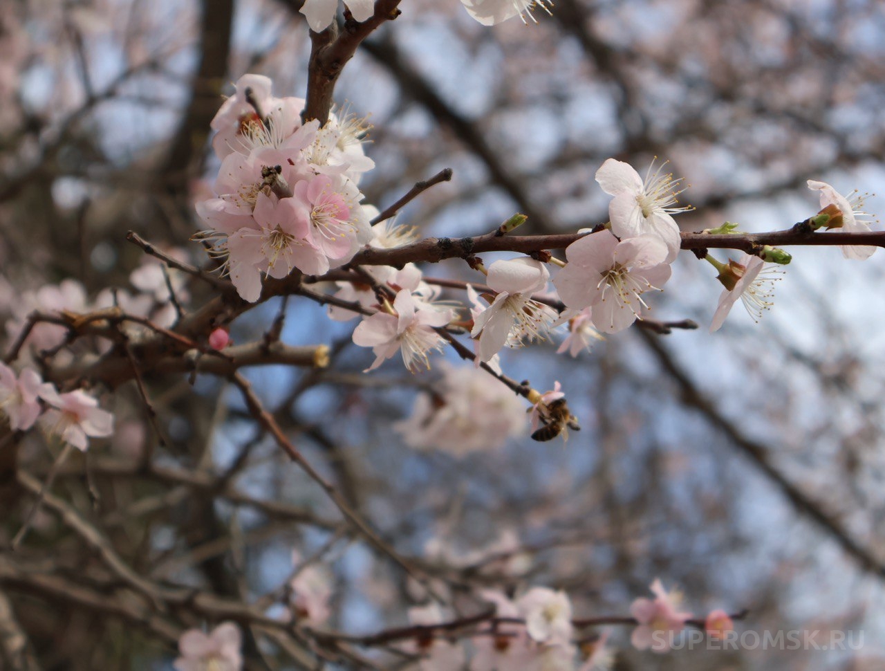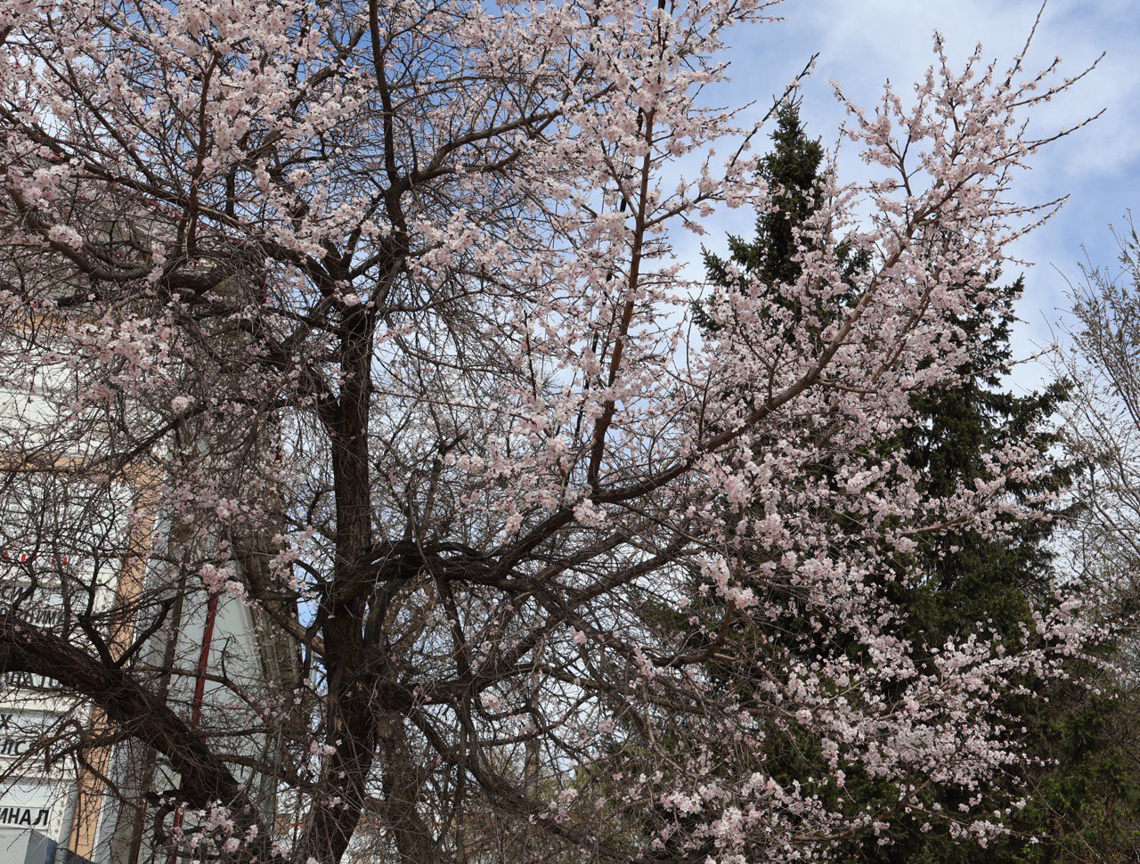 В воскресенье, 27 апреля 2025 года, прохожие в центре Омска стали свидетелями цветения городского символа весны – маньчжурского абрикоса.