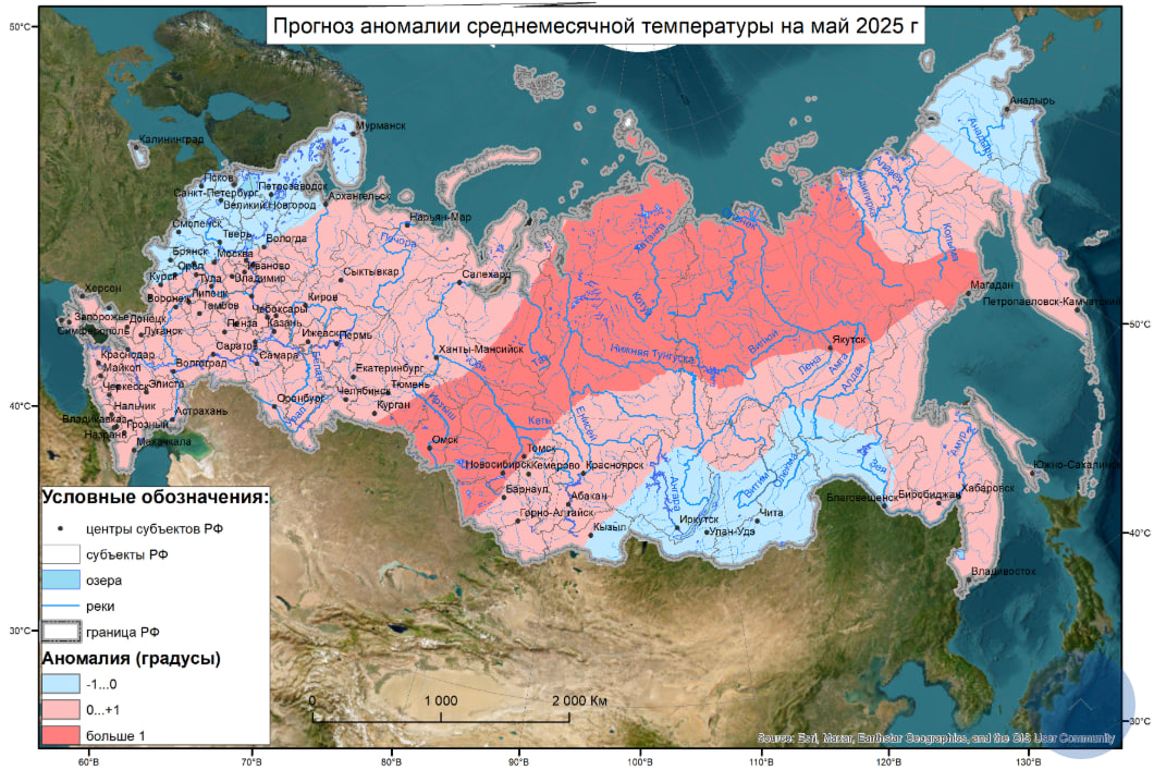 «Средняя месячная температура воздуха ожидается на юго-востоке Ямало-Ненецкого автономного округа и Ханты-Мансийского автономного округа, юге Тюменской области, в Омской, Томской и Новосибирской областях, в северной половине Красноярского края, в большинстве районов Якутии и на севере Хабаровского края – на 1-1,5 °С выше средних многолетних значений; на остальной территории – около нормы», – говорится в сообщении Гидрометцентра РФ.