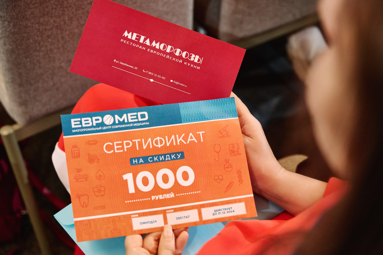 *Организатор акции ООО «МЦСМ «Евромед». Сроки акции: 31.05.2025. Подробная информация об организаторе, сроках, условиях проведения акции, количестве подарков, сроках, месте и порядке их получения по тел. 8 (3812) 331-471.