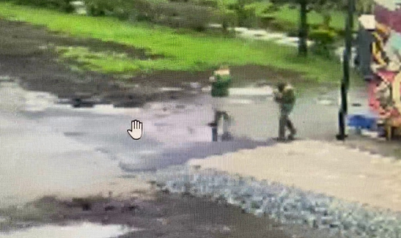 Фото: рабочие несут щенков на руках / источник: записи камер видеонаблюдения в парке Победы.
