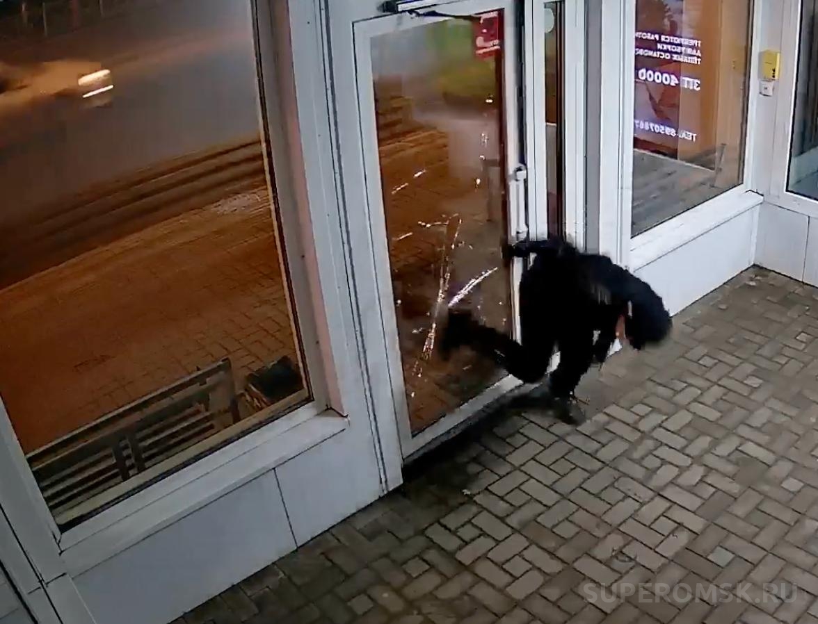 На фото: момент удара по стеклу / Фото: скриншот видео паблика «Инцидент Омск»