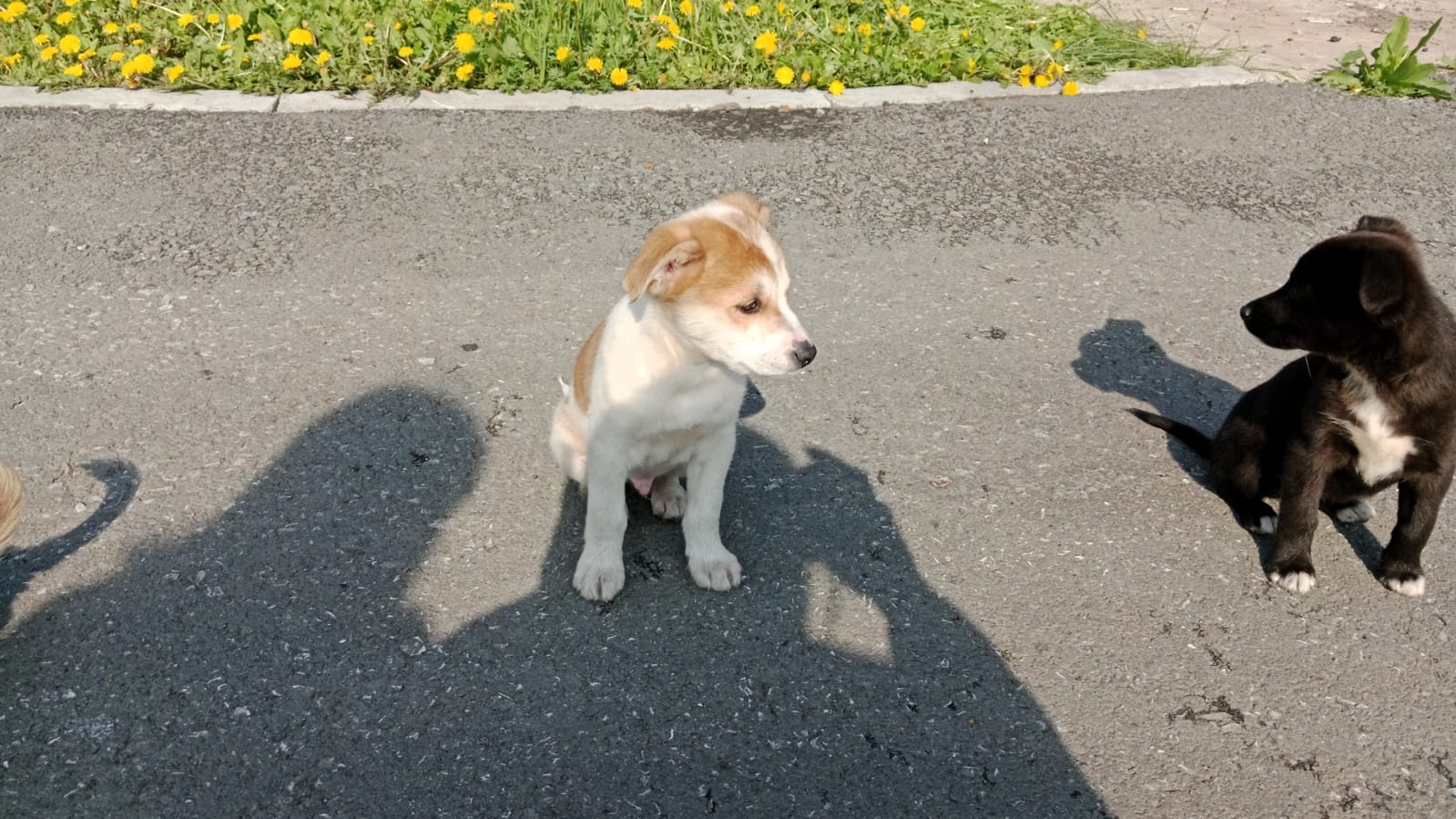 Одного щенка удалось пристроить, но еще пятеро остаются под открытым небом, без хозяев, человеческого тепла и пищи.