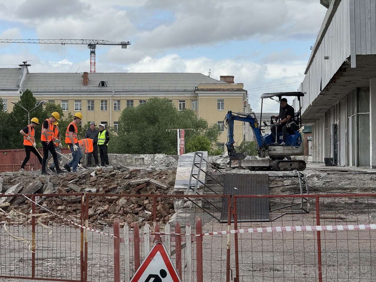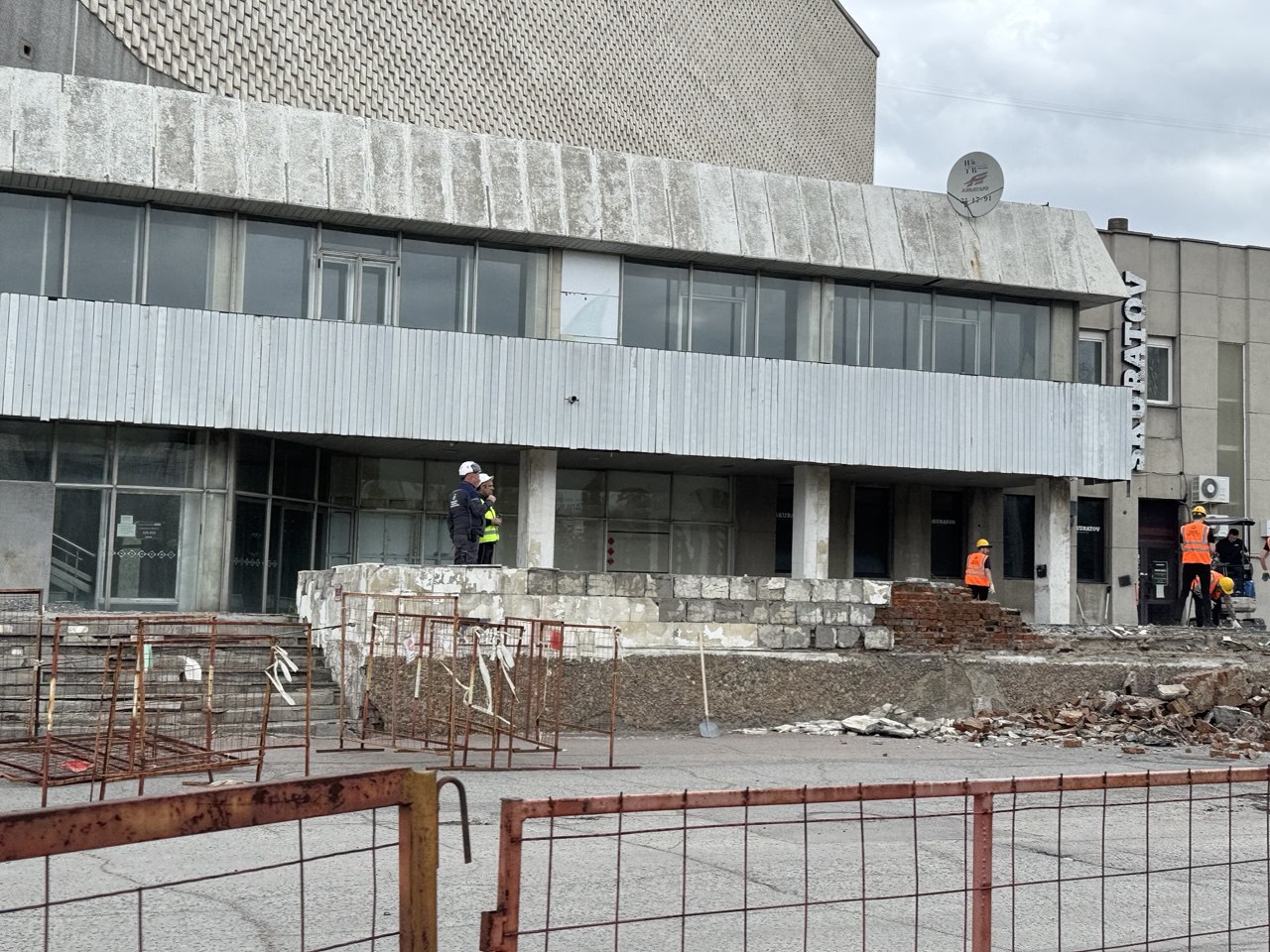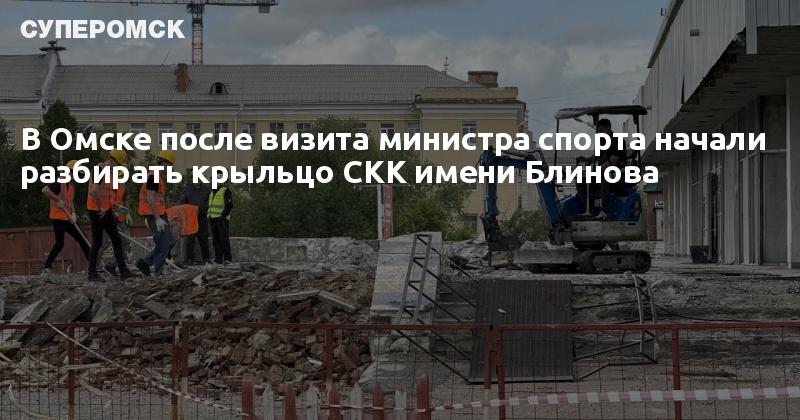 На фото: работы по демонтажу крыльца СКК им. Блинова / Фото: «СуперОмск»