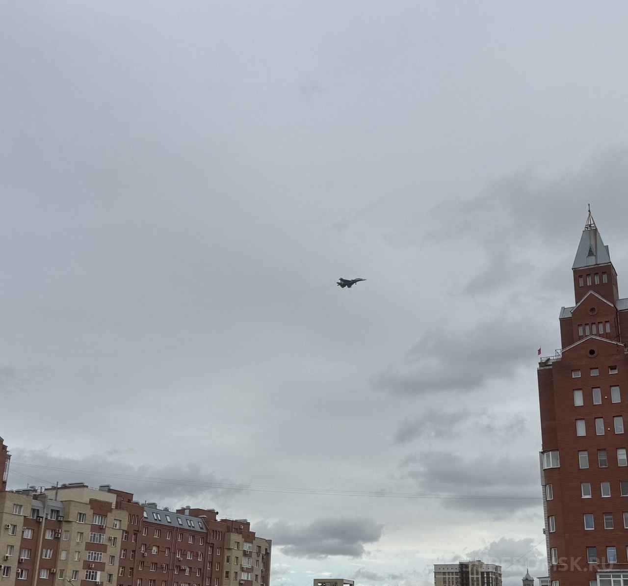 В частности, самолет, похожий на сверхзвуковой истребитель, пролетел над центром города, направляясь в сторону аэропорта.