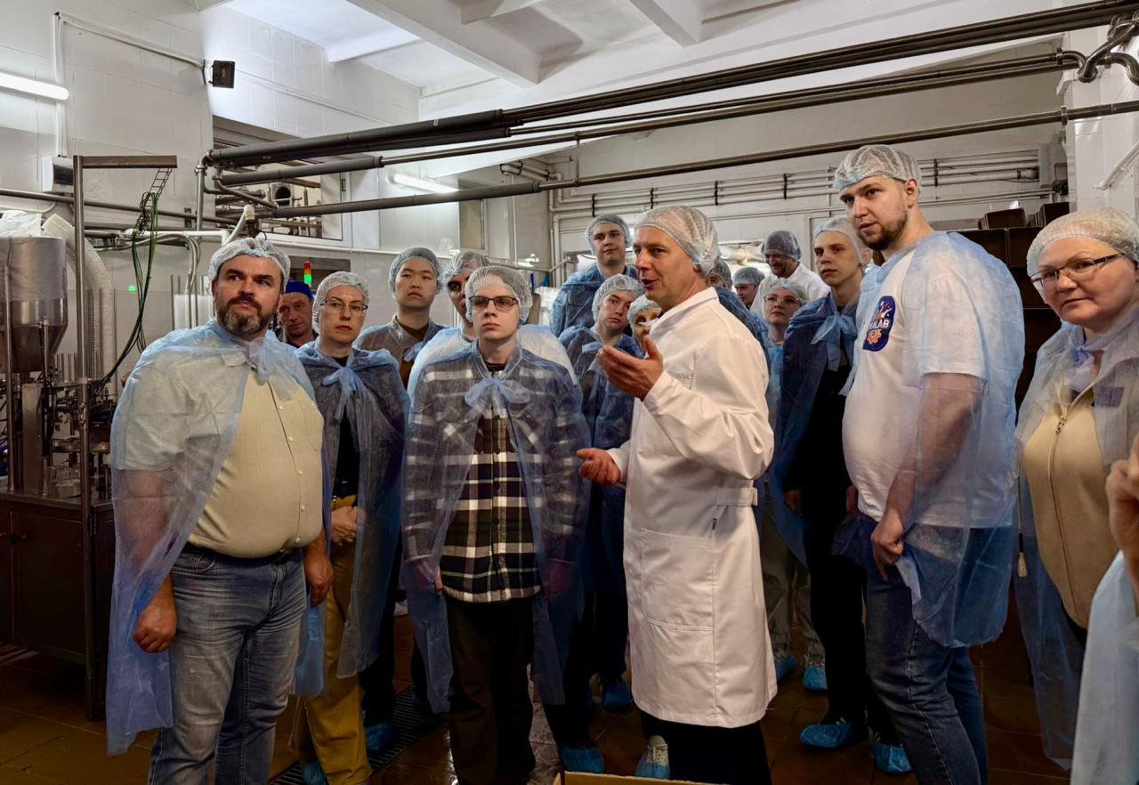 Руководство и сотрудники предприятия тепло встретили делегацию и организовали подробную экскурсию по предприятию с соблюдением всех требований безопасности и чистоты пищевого производства.