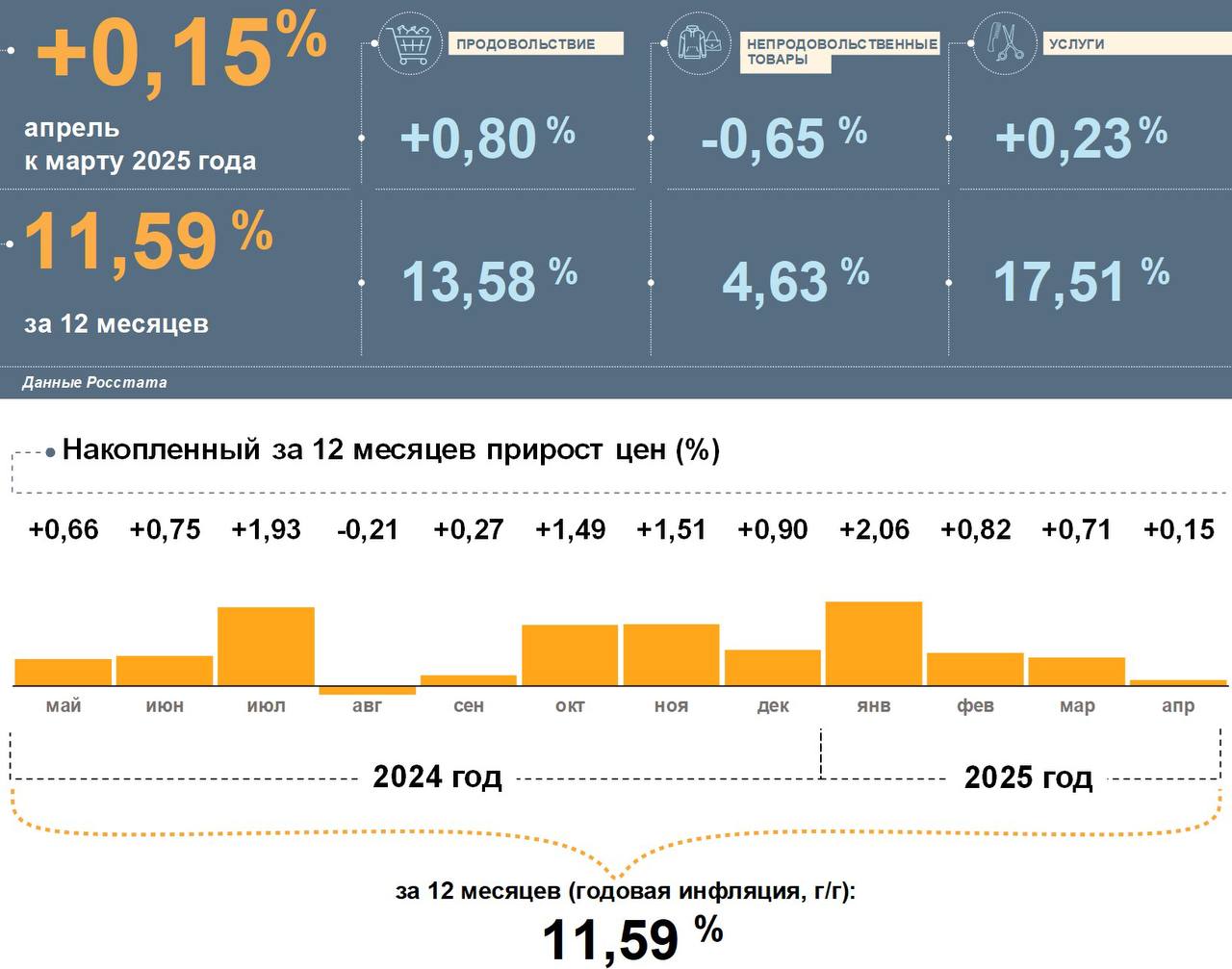 В апреле 2025 года, как заявляется, цены выросли на 0,15 %.