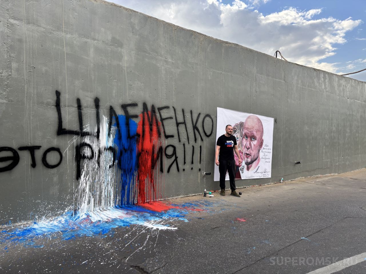 Художник Роман Яковлев опубликовал в своем телеграм-канале картину с названием: «Шлеменко – это Россия» (18+). Указано, что она появилась напротив музея современного искусства Винзавод в Москве в поддержку омского бойца Александра Шлеменко. При этом художник Яковлев сам добавил надпись на стене.