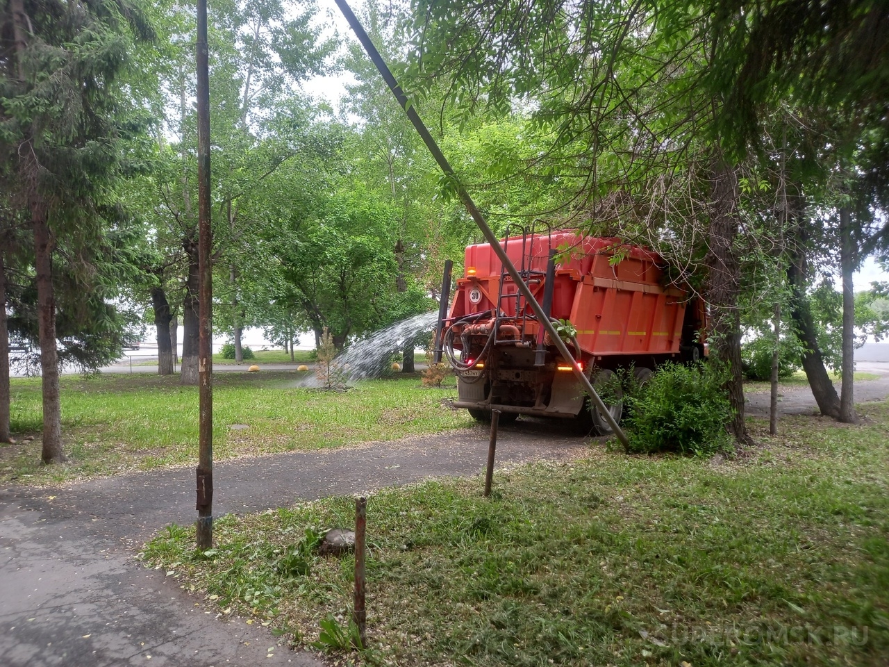 В мэрии Омска прокомментировали разлетевшееся по соцсетям видео, где автомобиль на парковке моют рядом с машиной, якобы принадлежащей УДХБ. Из ролика анонимного автора можно предположить, что шланг для полива растений используют с незапланированной целью. Рядом также можно увидеть человека в защитном жилете, правда, машину моет не он.