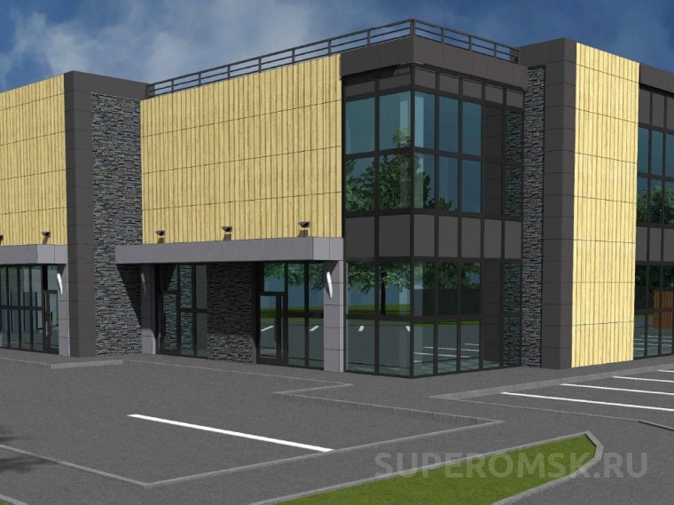 Как рассказали в пресс-центре омской мэрии, торговый объект будет представлять собой трехэтажное здание с подземным этажом общей площадью 1 268,2 кв. м. Как видно на эскизе, серое здание местами будет иметь облицовку из желтых панелей, а по углам устроят панорманые окна.