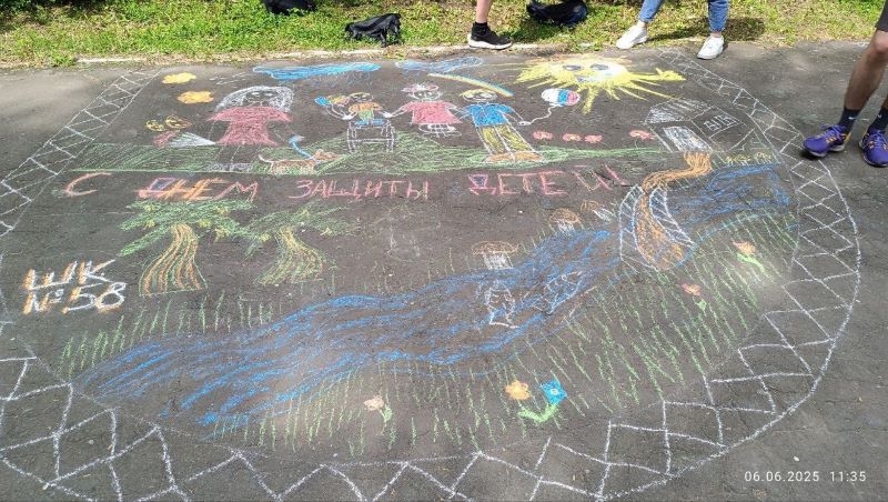 Ребята рисовали мелом на асфальте природу, цветы, облака и радугу, родителей и друзей – словом, все то, что ассоциируется с летом и каникулами.