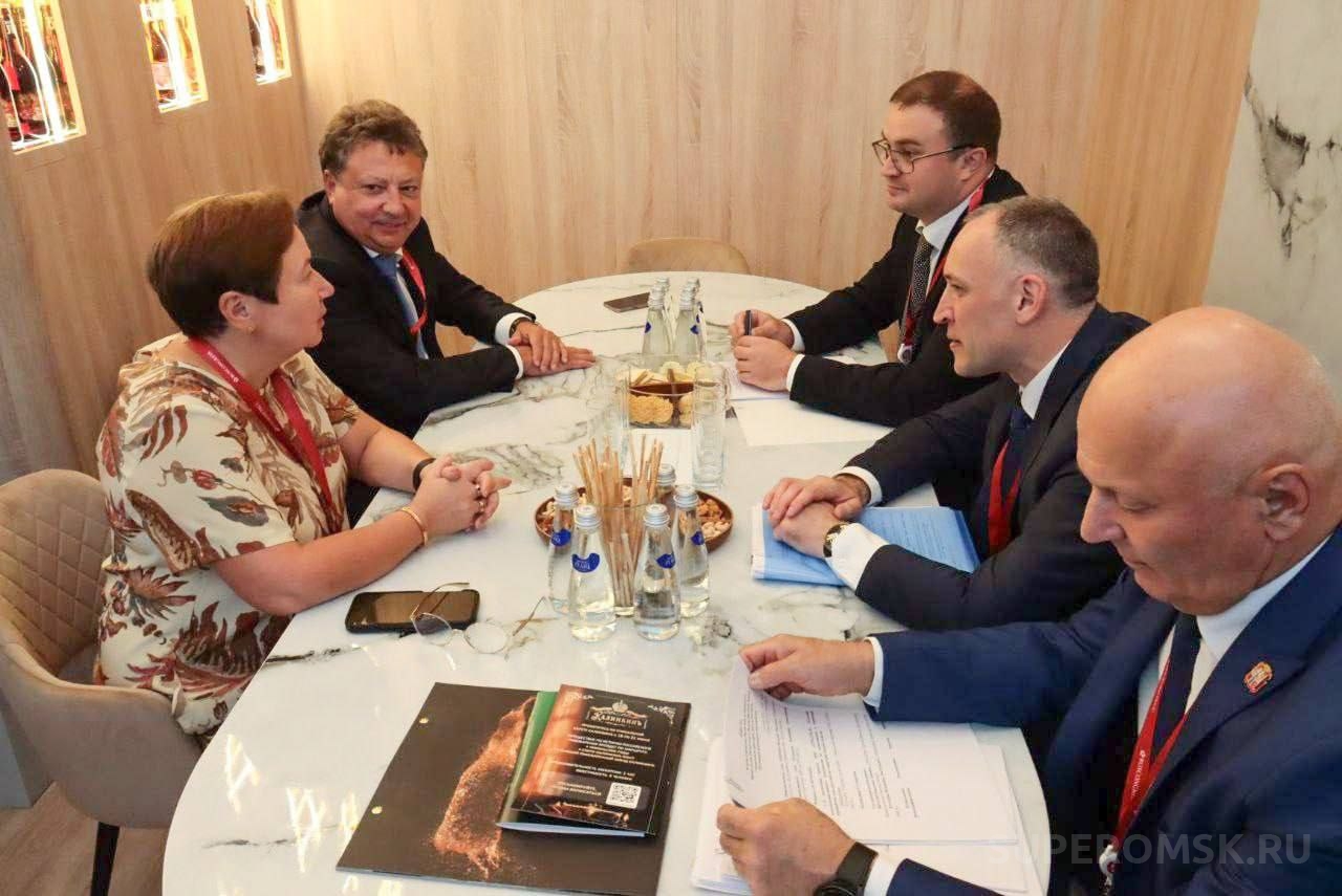 Делегация Омской области открыла первый день ПМЭФ-2025 деловой встречей с крупной бизнес-структурой.