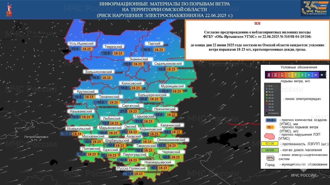 В воскресенье, 22 июня 2025 года, пресс-служба регионального МЧС России опубликовала предупреждение о риске сбоя подачи электричества в Омске и области из-за сильного ветра.