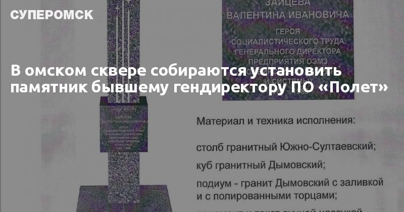 В омском сквере имени В.И. Зайцева намерены установить мемориал почившему гендиректору ПО «Полет».