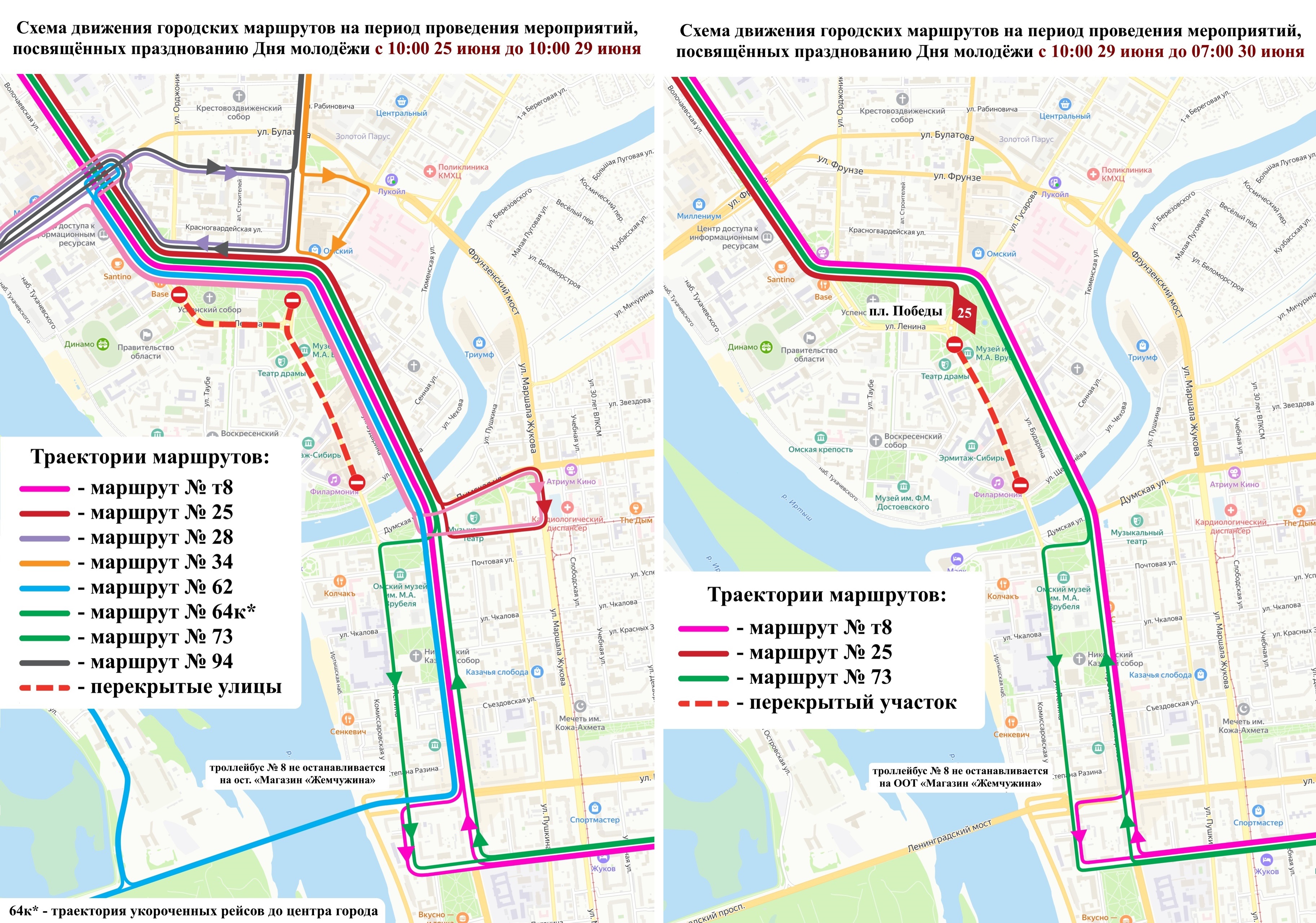 Из-за этого общественный транспорт поедет по другим улицам, смотрите схемы ниже.