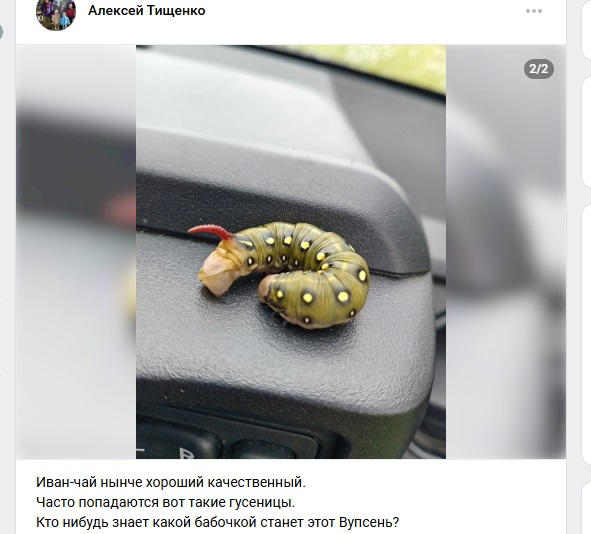 «Иван-чай нынче хороший, качественный. Часто попадаются вот такие гусеницы. Кто-нибудь знает, какой бабочкой станет этот Вупсень?» – поинтересовался автор поста.