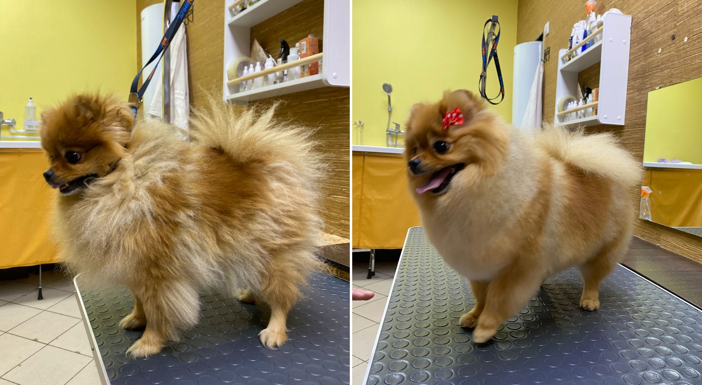 «Шпуля всегда в порядке, клиенты привозят ее ко мне каждые два месяца, чтобы та оставалась здоровой и красивой. Мы ее моем, делаем массаж, маску после купания. Во время самой стрижки ведет себя хорошо. Немного вертится, но не критично. Ее стрижку я называю «Апельсинка», поскольку вся круглая со всех сторон, но это мое название. Стригу ее только ножницами, а гигиену делаю триммером. Шпицов нельзя брить, от этого портится шерсть», – пояснила «СуперОмску» опытный грумер Татьяна Оксюта.