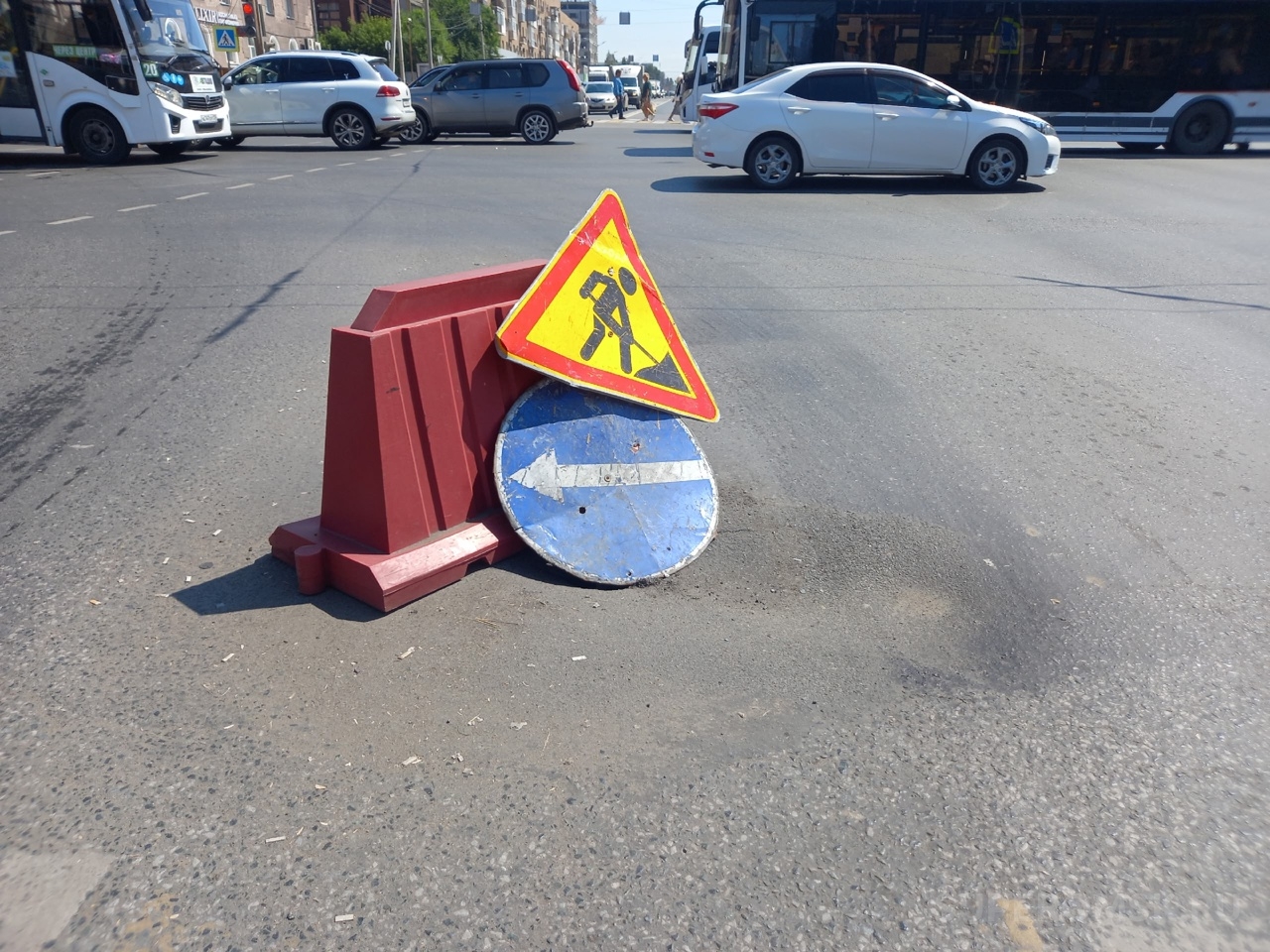 На фото: перекрытие из-за провала на перекрестке / Фото: «СуперОмск»